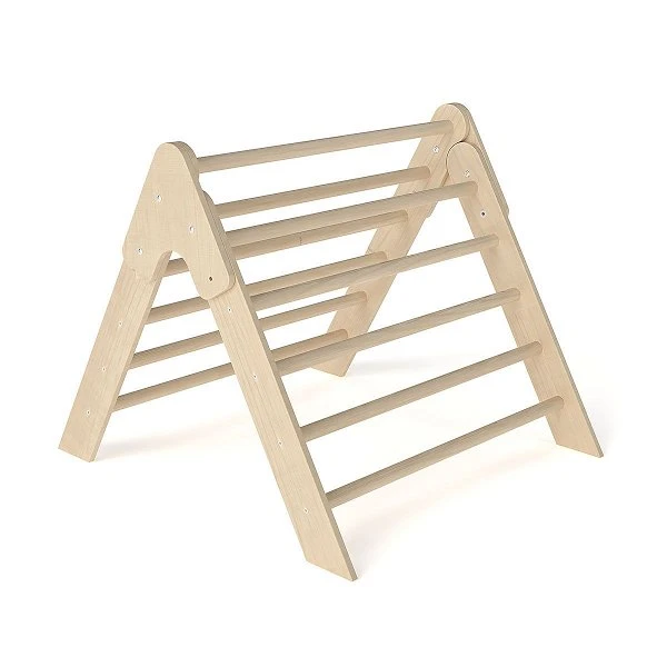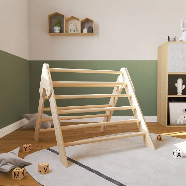 Die stabile Konstruktion aus Kiefernholz verträgt so einiges, und wenn das Kletterdreieck Max nicht gebraucht wird kann man es zusammenklappen und platzsparend verstauen.