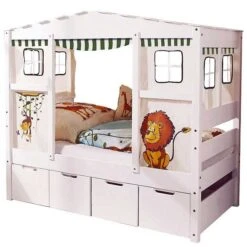 Ticaa Hausbett MINI Safari Kiefer 2 Schubkästen Weiß Massivholz – Dessin: Safari – 80 X 160 Cm