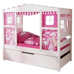Ticaa Hausbett MINI Horse Rosa Kiefer Schubkästen Weiß Massivholz – Dessin: Horse Rosa – 80 X 160 Cm