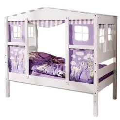 Ticaa Hausbett MINI Horse Lila Kiefer Schubkästen Weiß Massivholz – Dessin: Horse Lila – 80 X 160 Cm