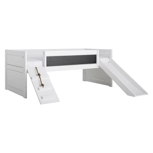 Das LIFETIME Kojenbett ist aus massiver astfreier Kiefer hergestellt. Dadurch treten keine Verfärbungen auf, die man von Astlöchern her kennt. Die Oberfläche ist mit einem weißen Möbellack auf Wasserbasis behandelt worden.