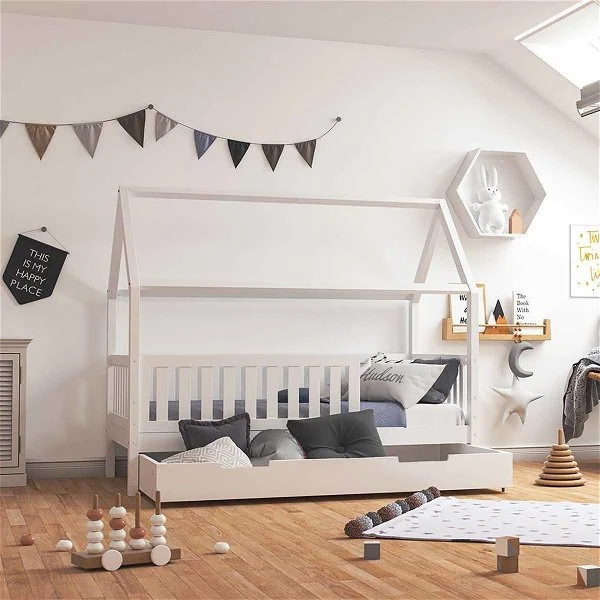Mit dem modernen und frechem Design ist das Nature Kid Lilly Hausbett ein Highlight für jedes Kinderzimmer. Hier kann Ihr Kind im eigenen „Haus“ sicher und geborgen seiner Fantasie freien Lauf lassen. Die Dachkonstruktion lässt sich toll mit Stoffen, Lichterketten, Girlanden oder was einem gerade einfällt dekorieren.