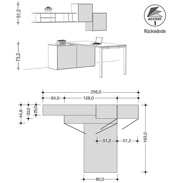 Maße: je 25,6 x 128 x 25 cm (H x B x T)