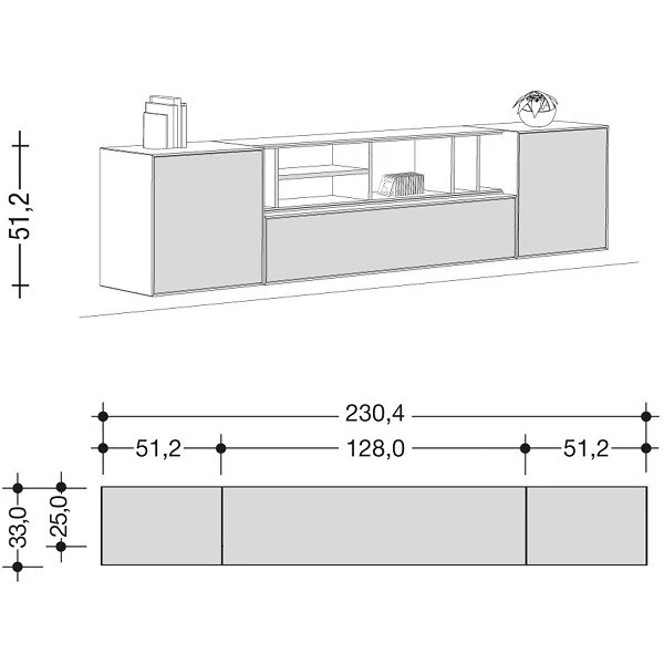 Gesamtmaß: 72,2 x 230,4 x 33 cm (H x B x T)