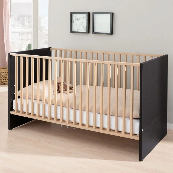 Das Paidi Tomke Kinderbett besitzt ein geschlossenes Kopf- und Fußteil in Naturschwarz. Die Gitterstäbe sind aus massiver Buche und haben 3 herausnehmbaren Schlupfsprossen. Mit dem innovativen Schlupfsprossen-Mechanismus sind die drei Stäbe spielend leicht herausnehmbar. Dies erleichtert dem kleinen Bewohner zu gegebener Zeit den Ein- und Ausstieg. Das Kinderbett ist mit dem AIRWELL® Comfort-Lattenrost ausgestattet, dieser ist 4-fach höhenverstellbar.