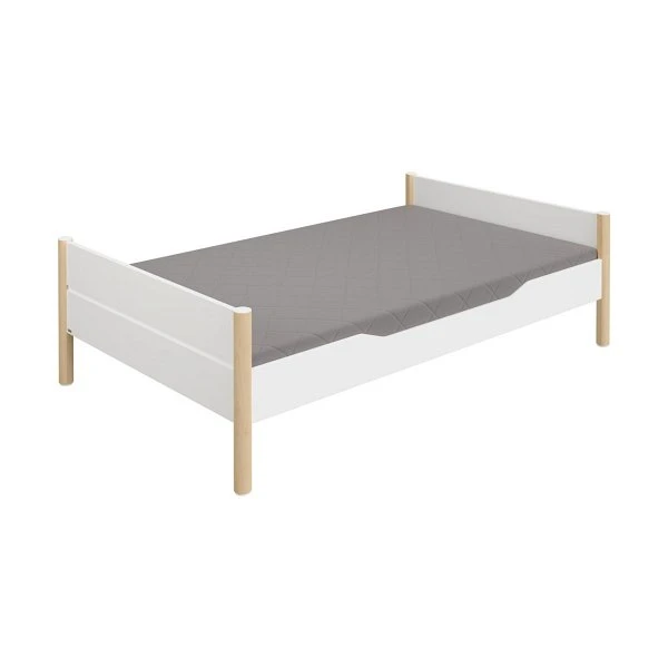 Die Paidi Ylvie Liege besitzt offene Kopf- und Fußteile mit gleich hohen Häuptern. Sie kann zum Etagenbett, Spielbett oder Hochbett umgebaut werden (nur mit Liegefläche 90×200 und 120×200 cm) und lässt sich mit Bettkästen, einem Ausziehbett (siehe Foto), diversen Textilien und Absturzsicherungen ergänzen.