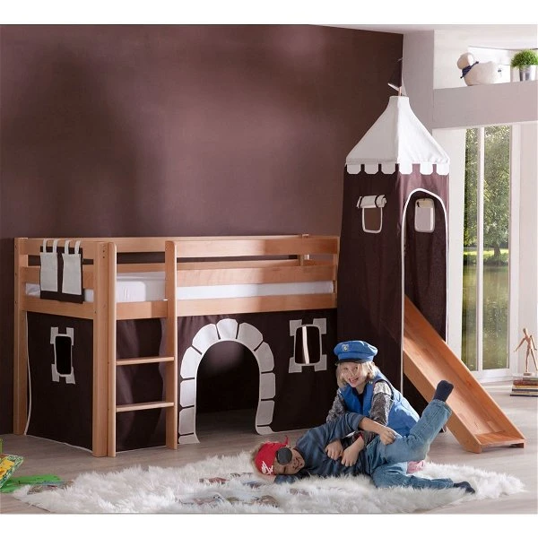 Das Relita ALEX Halbhochbett ist ein Qualitätsbett aus Massivholz zu einem erschwinglichen Preis. Die Rutsche und die Leiter können wahlweise links oder rechts montiert werden und die umlaufende Absturzsicherung schützt vor dem Herausfallen. Zusätzlich ist eine Turmhalterung im Lieferumfang enthalten, die mit einem passenden Textil-Turm bestückt werden kann. Dank zahlreichem Zubehör in verschiedenen Farben kann das Relita ALEX Halbhochbett individuell ausgestattet werden.