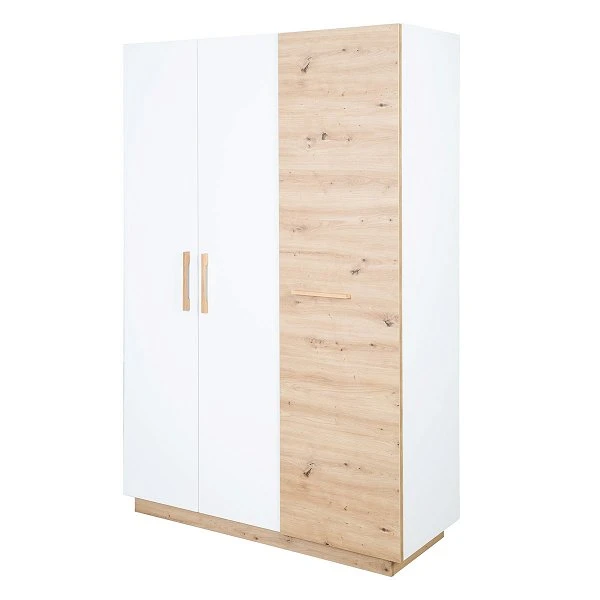 Der roba Lion Kleiderschrank überzeugt mit einem eleganten und zeitlosen Design. Er verfügt über 3 Türen mit hochwertigen Massivholz Griffen. Die Türen haben eine eingebaute Softclose-Technik wodurch sie sich sanft und leise schließen lassen. Im Inneren befinden sich 5 Böden und eine Metallkleiderstange zur Aufbewahrung der Kleidung.