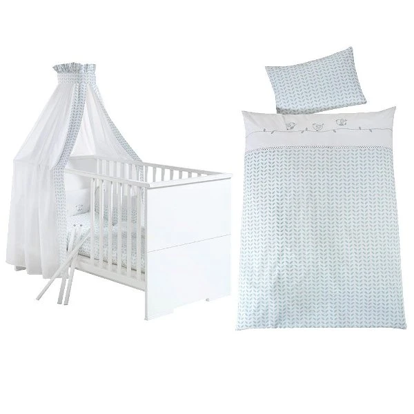 Das Bettset erfüllt die Qualitätsanforderungen des Gütesiegels Öko-Tex Standard 100. Verwendbar für Babybetten mit 70 x 140cm Matratzenmaß.