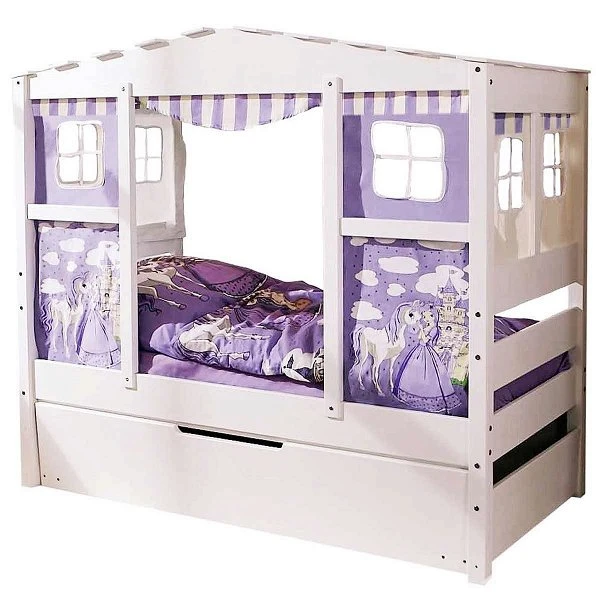 Ticaa Hausbett MINI Horse Lila Kiefer Weiß inkl. Bettkasten – Dessin: Horse Lila